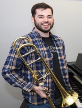 Cal Switzer is a Dean’s List freshman studying Music Education at the University of Nebraska at Kearney. He studies trombone and jazz with Dr. Tim Farrell at UNK and with Dr. Jay Wise in Omaha. Cal is principal trombonist in the UNK Jazz/Rock Ensemble and UNK Wind Ensemble. He also performs in the Kearney Symphony Orchestra, UNK Pride of the Plains Marching Band, UNK Brass Quintet, and leads the UNK Jazz Combo.